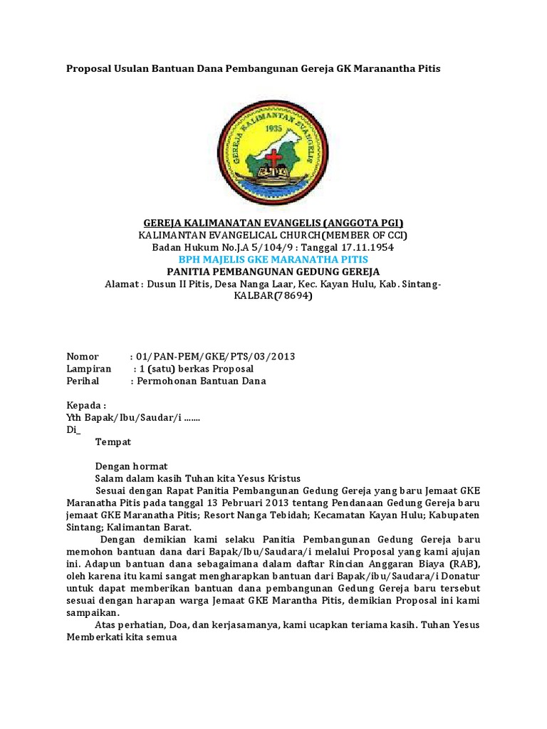 Proposal Usulan Bantuan Dana Pembangunan Gereja Gk Maranantha Pitis Pdf